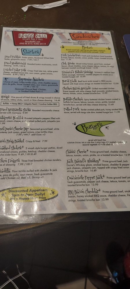 Welcome to Brass Rail Sports Bar & Grill, a hidden gem nestled in the heart of Kansas City. If you’re looking for a vivacious spot that pairs delicious food with an electric atmosphere, look no further. With a focus on New American cuisine, Brass Rail offers a diverse menu that caters to everyone from families to sports enthusiasts.